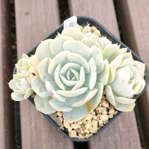 こんにちは╰(*´︶`*)╯♡ やっと大雨☔が止みましたよ20 ℃ 🏷️今日のお花 エケベリア 1️⃣ Echeveria 'Lucita' ルシータ ペールブルーのロゼットが素敵💓 2️⃣七福神様 ↙️先日黒ボットに外した子株も育っています♪ ↖️地植えで頑張ってる神様 ただいま水滴💧飛ばしに奮闘中٩( ᐛ )و