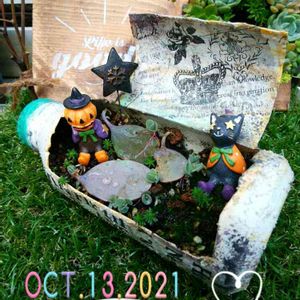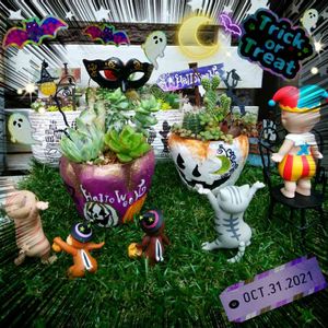 朝は日が射して暖かいかな~と油断してたら午後は曇りで肌寒く、三時ごろには雨がシトシト☔ お家の中で撮影📸 ハロウィンハピコロちゃんと悪魔鉢で🏷ダークハロウィン参加しまーす✨ ロメオさん少しずついい色合いになって🍀