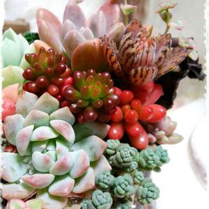 今日は1日雨ですね☔ 家の中で可愛い子眺めて癒されてます(○´∀`○)💕 この寄せ植えのここが好き~💞 艶々な真っ赤な子 シマシマの怪しい色合いの子 ダシフィルムの小さなモケモケ(≧∀≦)✨ ずっと眺めてたい(笑)