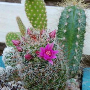 今日までの暖かなお天気☀ 明日は雨ですね……☔ この前のダイソー産『ビャクダン』ってタグついてた子(≧∀≦) 一番奥の大きな🌵 その他のダイソー産サボテンで寄せ植えしました~💕 手前の金色と白色チビちゃんは我が家で増えた子を入れました サボードくんも見守ってくれてます🌵