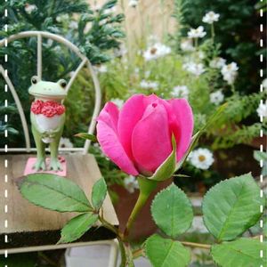 1番~💞 ミニバラが咲きました~🌹 濃いピンクの薔薇❤ 薔薇の季節ですね~(*´ω`*) 三つのミニバラとピエールさんが蕾を付けてるのでこれから楽しみ~(≧∀≦)✨✨✨ コポたんも花束持って駆けつけてくれましたよ~💞