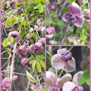 アケビの花が満開💜 つまみ細工みたいなお花がユラユラしてる姿が可愛くて💕 GSで雄花・雌花があることをしりました☺️ 上が雄花 下が雌花かな🌿 追記✨ 上が雌花で、下が雄花でしたー🙏 小さな雄花がたくさんついてる先端あたりに雌花が1つあるそうです💕 一人の女子の周りに素敵な男子がいっぱいなんですね〜😁 今日の仕事の帰り道も見て帰ろう〜💖