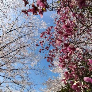 🌸春です🌸2枚目✨ 空を見上げて歩いてたら 可愛い色合い(人*´∀`)。*゚+ 春のコラボができました💕 穏やかな空💙 このまま見上げていたい🍀