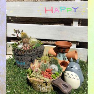 🏷毎月16日はトトロの日🌿 参加させていただきます💕 ミニサボ弁当をインスタ販売で購入✨ サボ寄せ出来立てホヤホヤです🌵 小さなフライパン鉢⭐ コンクリート鉢⭐ サボテンだけのシンプルにって思いながら、やっぱりセダム入れちゃった😁 モリモリだと可愛んだもん💖 陽射しが暑い気がする〜☀ 水遣りした多肉さん蒸れないで〜🙏💦