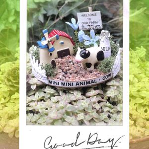🏷牛の日🐮 🏷錦の日✨ 参加させていただきます☺️ 可愛い牛さんのミニ箱庭牧場のキットを見つけたのでつくりました〜💕 板の上にボンドを塗って砂をちらし置き物をボンドで貼りながら配置すれば完成〜✧◝(⁰▿⁰)◜✧ リトルミッシーの丘で可愛い牧場が出来上がりました〜🐮