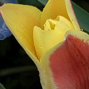 🌷原種系チューリップ🌷 ❤️💛チンカ💛❤️ 昨日まで咲きそうにもない蕾だったのですが…… あら…びっくりΣ(゚Д゚) 雨日和だったので、傘☂差しながら行ってみたら、咲いていました!全開ではないのですが? 1日でこうなるのにびっくり(・・;)でした! 2025.3.27.📸pic