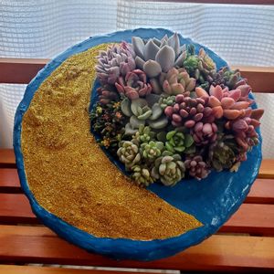 こんにちは👋😃 三日月のモルタル鉢作って多肉さん寄せ植えしてみました🎵 モルタル鉢作りはまだまだですが多肉さん可愛いからカバーしてくれています😆🎶✨