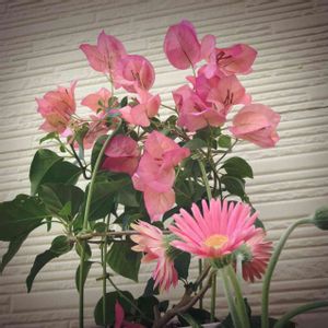 ✨ガーベラ×ブーゲンビリア✨ 夜…実家からの帰り道…近所のスーパーへ立ち寄ると… 想定外の鉢もの半額SALE(♥︎óωò♥︎) 👛お財布を所持してなかったので… わたしは渋ピンクのブーゲンビリアを持って…旦那はんを出待ち💨💨 10歳児も便乗してガーベラを👍🏻 しかも…あなたもピンク⁈ チョイス⁈ 先月のpicの地味さ…ぱないっ 鉢は切り戻しで溢れ、揺るぎない緑で埋め尽くされる中… ピンクは映えます💓 この場をお借りして…ありがとう 近所のスーパー+旦那はん