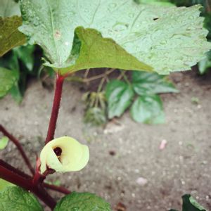 ✨赤オクラ✨ ☔️葉っぱで雨宿り 連日の雨…どうか、みなさまご安全に‼︎ 🎋