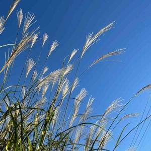 いつものランニングコースにて🏃♂️ 青空にススキ。 爽やかな朝です😃