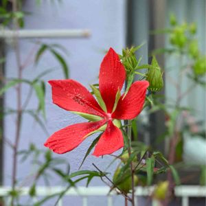 今朝ランニング中に道路沿いに背の高い、真っ直ぐ伸びた真っ赤なお花を見つけました🌺 近寄って見ると、お花がベルベットの様な質感でした✨ 綺麗なお花でランニングの疲れも癒されました☺️ 初めて見た植物だったので名前が分からないので教えて頂けたら嬉しいです♥️ よろしくお願いします🙇♀️ 先程、カンナと教えて頂きました♥️ 色、質感、それに葉も綺麗で魅力的なお花だナ🥰 このコースでしばらくカンナ🌺を眺めてランニング楽しみたいと思います😄