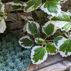 こんにちわ🌿🤍💚🌿✨ 錦の日🏷 遅れましたが、参加させていただきます✨✨ 確か、おまけで頂いたプレクトランサス💚🤍🌿✨ 最近コンテナガーデンの中で、 伸び伸びになってました😁 なんだか庭に出るのが怖い最近でしたが。。 マジョールも元気で嬉しい🎶 明日から、再び秋田に旅立ちますので、今日は留守中に備えて植物移動がんばりました。 怖くて、室内にたくさん入れちゃいました。。 ダンゴムシ🫨たくさん遭遇して。。めげました😫