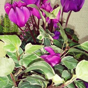 今日のお花、シクラメン。 寄せ植えで、存在感があります。