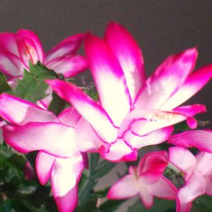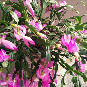 窓辺のシャコバサボテン。 26年ものです。 今年も咲いてくれました。
