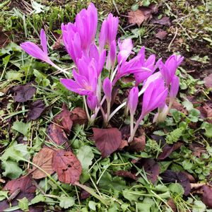 コルチカムとかイヌサフランと呼ばれるこの花は春に20cm〜30cmの葉を伸ばしますが 夏になると葉っぱは枯れてしまいます。 秋になると地面からニョキっと花茎を伸ばし 透明感のある薄紫色の綺麗な花を咲かせます。 アヤメ科のクロッカスやサフランによく似ていますが 別の科の植物です。 全草にコルヒチンと言う猛毒を含んでおり 玉ねぎや行者ニンニクと間違えて食べる事故があるようなので注意しましょう。 余談ですが イヌと名前の付く植物…。 イヌツゲ イヌマキ イヌタデ イヌサンショウなど たくさんありますが 植物の世界で "イヌ" は "本物に比べて役に立たない…" と言う意味で使われているようです。 ちょっと可愛そう…。 ヨーロッパ中南部 アフリカ北部原産。 イヌサフラン科イヌサフラン属の球根植物。