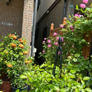 ①実は庭といえるものがありません。玄関前のアプローチと花壇。 ベランダの一角で育てています。 道路から見た我が家のバラ達 今日は通る人に何度も 『ロンサールはどうしたの?』と聞かれました。 癌腫でなくなり新しい苗を1から育ててますと伝えました。 知らない方々が楽しみにしてくださっている事が嬉しかったです。 また頑張ってねとお婆ちゃまが 応援してくれました‼️ ②、③ロアルドダールが咲きました 今年は蕾の数がすごいです😍 ④ジュビリーは蕾からすでに美人さんです ⑤⑥ 昨年の在りし日のロンサールとラレーヌビクトリア