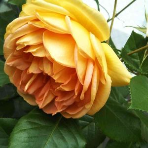 ER ”パットオースチン” イングリッシュローズに憧れてお迎えした思い出のバラ 毎年毎年咲いてくれます。 あっ💦葉っぱ🌿で花が隠れちゃった( ´•௰•`) 2022 surya’s rose no.5