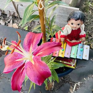 『スコーピオ』真っ赤なカサブランカが咲きました🌺木琴を叩く🧑🏻とコラボ