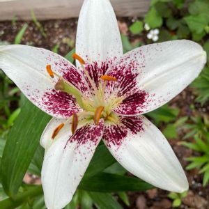 スカシユリ ホワイトピクセル 白の花びらにエンジ色のスポットが 入っています💗💕