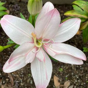 鉄砲百合とアジアティックハイブリッド との交配種 名前は、エロディ おしべが花びら状に変化した八重の スカシユリです💗 柔らかなピンクが特徴なんです💕