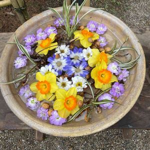 竹神社⛩の花手水シリーズ 🌼🌼🌼 水仙が登場しました🦋🦋