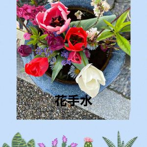 18時58分頃にNHKテレビ でこの花手水の写真が 紹介されてました🌸🌺🌼💐🌷