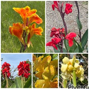 カンナ 1️⃣2️⃣田んぼの畔に咲くカンナ 2025.7.31 3️⃣ベンガルタイガー 畑2025.7.26 4️⃣ダンドク ご近所 2025.7.30 5️⃣ダンドク 緑道 2025.6.12