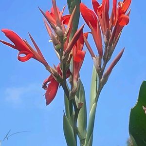 「湧水池で群生」 撮影📱2025.8.3 おはようございます😀 熊本市・上江津湖の 芭蕉園湧水池で撮影📱 ダンドク🌼 真っ赤な花が大空に 伸びる姿は綺麗やわ😀 ダンドク🌼はカンナ🌼 の原種で 湧水池では水際に群生 して咲いてるんよ🎵