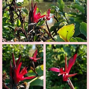 「芭蕉園遊歩道で咲く花」 撮影📱2025.8.24 熊本市上江津湖の 芭蕉園遊歩道で撮影📱 ダンドク🌼 黄色や赤色の花を咲かす カンナ🌼の原種 上江津湖では黄色・赤色の カンナ🌼が遊歩道で咲き ダンドク🌼は芭蕉園のみ 見る事が出来るんよ🎵