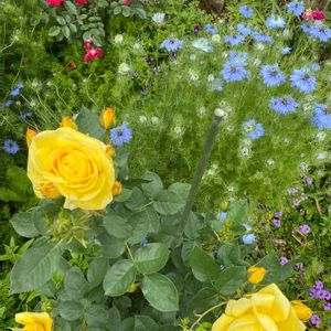 名無しさん薔薇とニゲラ ニゲラは、こぼれ種で出てくるので、密なんですが、抜けませんでした。
