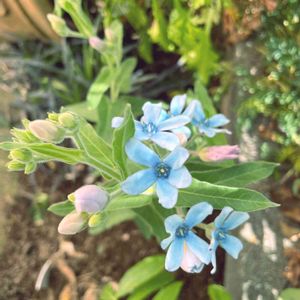 朝から蒸し暑いです💦 こぼれ種で増えると聞いて、探してた ブルースター💕 適当な鉢がなかったので、地植えしてみました。 大きくなって、増えますように〜