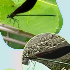 番外編 花では有りませんがm(_ _)m ❤︎オハグロトンボ❤︎ (神様トンボ 又は極楽トンボ) 従妹の家の庭無花果の花に止まってました 縁起の良いとされてるみたい 早速従妹とスマホ📱でパシャリ❤︎💖