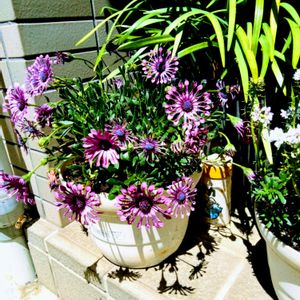 知人宅の玄関前に、 鉢植えのお花が、置かれていました。 「オステオスペルマム」 です。