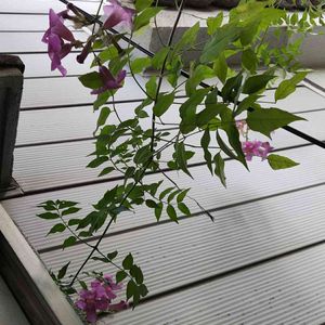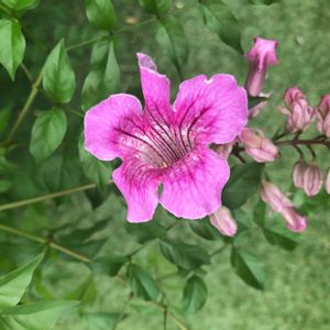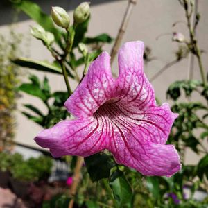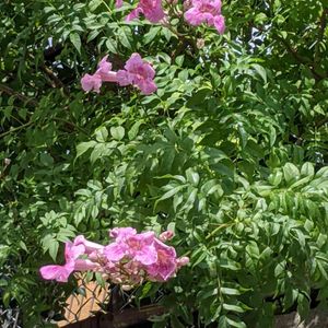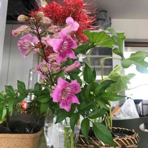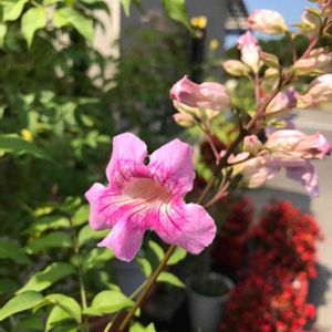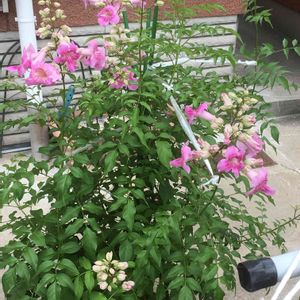 ノウゼンカズラの仲間 ポドラネア ブリーゼイ 毎年皐月の盆栽を楽しませてくれるおじいさんの庭に咲いてました。
