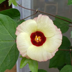 わーい🎵 保育園のベランダで コットン(綿花)咲いたよ💓 かわいいな~。 子どもたちも大喜び\(^o^)/
