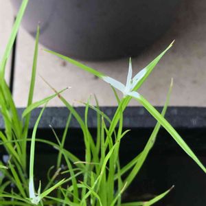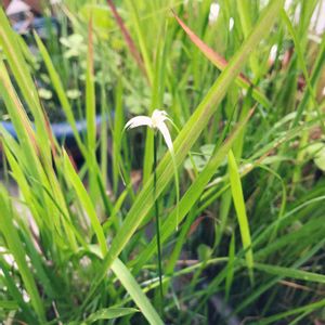 涼しげな苔玉を見つけ購入しました(^^) 『しらさぎすげ』の名前のとおり 白鷺が飛んでいるようです🕊