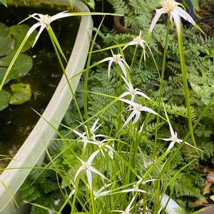 涼を求めてお迎えしました。 白い鷺が飛んでいるよう❓ 水辺でも育つということで水辺のビオトープに憧れたけど💧 結局鉢植えになっちゃった🪴