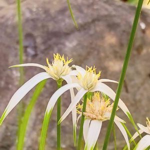 シラサギカヤツリ ⚪️⚪️💚 カヤツリグサ科 リンコスポラ属(ミカヅキグサ属、イヌノハナヒゲ属) 別名:シューティング・スター 白い鷺が飛んでいるような優雅な花🤩 茎 葉は繊細で、風に揺れて咲いている様に風情があります☺️👍️ 白く色づいている細長いのは苞ですね🥰