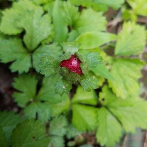 そういや、ヘビイチゴ🐍🍓ってあげたことなかったなぁ… 似た実は、ヤブヘビイチゴですが大きさが全然違う、と言っても比較できなければわからないので、果実の表面のツブツブを見てください😆 ヘビイチゴのツブツブはご覧のように、少し皺があるような感じです。ヤブヘビイチゴのツブツブは皺もなくツルツルで光ってます。