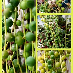 『グリーンネックレス』 かなり長いので画面に収まりません。等分しました。右上が根元です お花が咲いています。 今年は植え替えをしようと思います。🫠