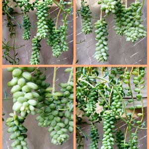 最近ブドウの様に 垂れて増えて来ました。 『セダム タマツヅリ』 最初は根本から沢山の葉が付いていたのにポロポロ取れて垂れ始めて来たのでこのまま様子を見る ことにしました。 (挿し木をするともっと沢山増える様だけどね👍)
