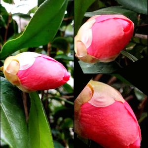 近所にこれから咲こうとしている『寒椿』を見つけました。かなりしっかりとした大きな蕾にビックリ👀👍
