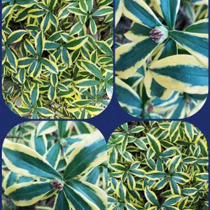 今日の出会い 『沈丁花』 斑入りの葉っぱは 珍しいかなぁ? とても綺麗ですよね。 蕾が小さく見えます。