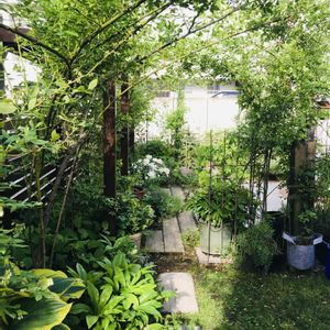 中庭ホワイトゾーンの小道周辺 クリスマスローズが満開! 段々に緑が映えてきました。