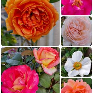 今朝の薔薇達 オデッセイア🌹 ホワイトクリスマス🤍 ブラスバンド🧡 プラムパーフェクト💜 朝夕は少し凌ぎやすい気温に変わって来ましたネ💕 庭も賑やかになって来ました。🌸🌱🌼🌱💠🌱🌹🍃