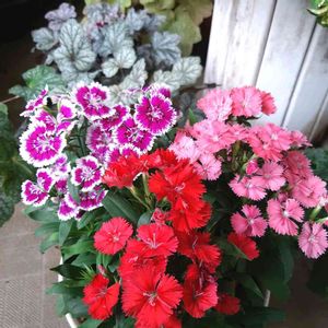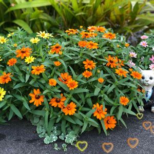 おはようございます😃 毎年この場所に植えているジニア🌸 今年は白いお花が買えなくて 黄色、オレンジ、ピンクを植えました💕 やっと綺麗になってきました。 葉っぱが茶色くなったりぐったりして ダメかなぁ〜って思ってたけど… こんもりしてきました🧡💛❤️