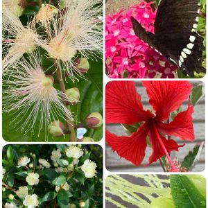平日始まった😓土日って意外に疲れるので、月曜日はハードだなぁ。体力、欲しい😄 今日のお花 ↗️ペンタス+黒アゲハ蝶 ➡️ハイビスカス ↘️🐞 益虫さん今日もありがと💕 ↖️サガリバナ ↙️ギンバイカ 満開😊 4月なのに早くも台風発生😰鉢植えの避難場所、間に合わないので、もう玄関にぎゅうぎゅうにして、🐱出入り禁止にするしかないな(~_~;) どーして🪴なんでもかじるんだろ? 昨夕、ホースで水やりすると時折り激しい風が吹き、水が四方八方に飛散。台風発生時点で影響を受けるうち😭 風対策を頑張らなきゃ💦 月曜だるい〜って言ってる場合ではないのね。