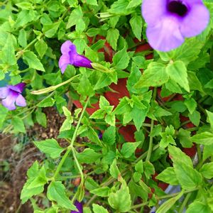 スーパートレニアカタリーナアメジスト 、だいぶ伸びてきて鉢から枝垂れてきましたが、花も咲いています。