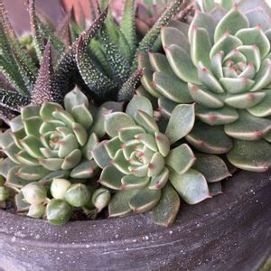 いただきものの多肉さん。 蛍光ピンクの縁取り テカテカ 波打つ葉っぱ とてもかわいいです 名前が分かると嬉しいです。