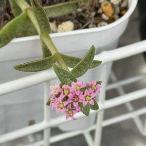 ①暑い夏を乗り越えて一本可愛く咲いているツクバネ これから傷んだ多肉さん達の手当てしなくちゃいけないと頭の中は忙しい💦 ②植えた覚えはないけど勝手に増えてピンクの🩷花を咲かせてる 取ったらいいのに可愛い花咲かせるので何か取り除くのを躊躇してしまいます ③ハートカズラ レディハート 1mぐらいに伸びてるので撮る為持ち上げて📸 ④横に広がり過ぎの桃太郎 葉一枚腐っていたのを取り除きましたが大丈夫? ⑤カシオ 少〜し爪赤くなって来ました ちょっとづつ色づいて秋っていいですね🍁🥰